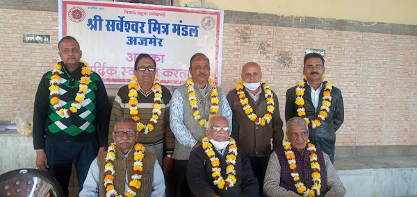 || अजमेर || हीरालाल नील------------------------------------------------------------------------------------------------------------------------श्री सर्वेश्वर मित्र मंडल अजमेर की शीतकालीन आमसभा व संस्था का 45वा स्थापना दिवस कार्यक्रम आज श्री कोटेश्वर महादेव मन्दिर, हाथीखेड़ा, फॉयसागर रोड़ अजमेर में संस्था अध्यक्ष श्री सुरेश अग्रवाल की अध्यक्षता में आयोजित किया गया। इस अवसर पर श्री सर्वेश्वर मित्र मंडल अजमेर की त्रिवार्षिक कार्यकारिणी के 5 पदों के लिए चुनाव भी कराये गए। निर्वाचन अधिकारी श्री बालकृष्ण जोशी व श्री ओमप्रकाश वर्मा की देखरेख में सम्पन्न हुए चुनाव में अध्यक्ष पद पर पूर्व पार्षद शैलेन्द्र अग्रवाल, वरिष्ठ उपाध्यक्ष प्रदीप अग्रवाल, उपाध्यक्ष जे पी शर्मा, महासचिव प्रवीण अग्रवाल व कोषाध्यक्ष पद पर चंद्रनारायण अग्रवाल निर्वाचित घोषित किये गए पांचो पदाधिकारी निर्विरोध निर्वाचित हुए। सभी नवनिर्वाचित पदाधिकारियों का व निर्वाचन अधिकारियों का संस्था सदस्यों ने माल्यार्पण कर स्वागत किया। इस अवसर पर नवनिर्वाचित अध्यक्ष शैलेन्द्र अग्रवाल ने उपस्थित सदस्यों को सम्बोधित करते हुए कहा कि जिस आशा और विश्वास के साथ सभी सदस्यों ने उन्हें जिम्मेदारी सौंपी है वे सभी के विश्वास पर खरा उतरने का प्रयास करेंगे तथा संस्था के उद्देश्यों की पूर्ति के लिए सभी के सहयोग से कार्य करेंगे, अग्रवाल ने पांचों पदाधिकारियों के निर्विरोध निर्वाचन के लिए सभी का आभार व्यक्त किया।